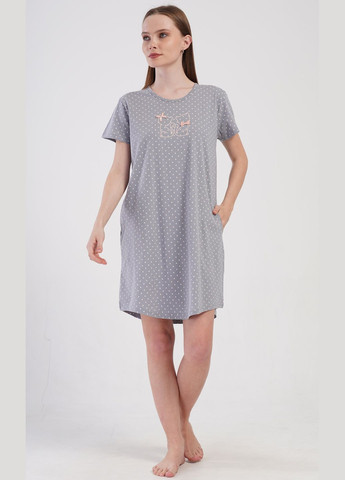 Цвет Серый / Материал Хлопок / Узор Горошек / Фасон рукава Вшитый