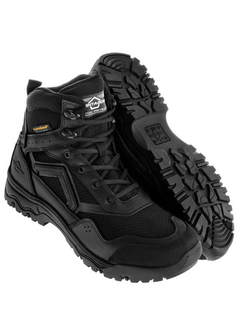 Ботинки Тактические Демисезонные M-Tac Цвет Black (Черный) Тактические демисезонные ботинки M-Tac Black — это надежная, износостойкая модель, разработанная для использования в демисезонный период (весна-осень) при умеренных температурах. Они сочетают в себе функциональность военной обуви и комфорт трекинговых полуботинок, обеспечивая защиту и вентиляцию. Конструкция и материалы верха: Верх: Изготовлен из комбинации высококачественной плотной натуральной кожи (замши) и прочного, износостойкого материала Cordura. Эта комбинация обеспечивает высокую прочность, устойчивость к разрывам и позволяет обуви быть одновременно влагостойкой и "дышащей". Подкладка: Мягкая мембрана WaterProof обеспечивает идеальный микроклимат внутри ботинка, защищая от промокания, но позволяя ноге дышать. Защита: Носок — Прорезиненный, что надежно защищает стопу от ударов и значительно увеличивает долговечность ботинок. Пятка — Усилена масло и бензостойким термопластичным полиуретаном (TPU), который обладает повышенной устойчивостью к истиранию. Язычок: Изготовлен из материала Cordura, гарантирует комфорт при сгибании стопы и защищает его от перетирания шнурками. Колодка: Специальная колодка, оптимальная для длительных походов и высоких нагрузок. Стелька: Анатомическая стелька придает мягкости всей внутренней конструкции ботинка. Шнуровка: Удобная удлиненная шнуровка позволяет идеально закрепить ботинок на ноге. Шнурки прочные, не промокают и не скользят. Подошва и Амортизация: Подошва: Двухкомпонентная литая подошва, которая отличается безупречными теплозащитными свойствами и устойчивостью к перепаду температур. Технология литого крепления не пропускает влагу. Внешний слой (Протектор): Износостойкий термопластичный полиуретан (ТПУ). Внутренний слой (Амортизация): Вспененный полиуретан, обеспечивающий необходимую амортизацию и гибкость. Протектор: Разнонаправленный рисунок протектора гарантирует хорошее сцепление с поверхностью (асфальт, грунт, бездорожье) при ходьбе или беге. Ключевые особенности: Удобные и многофункциональные. Достаточно легкие. Водоотталкивающие и отлично вентилируются благодаря мембране. Идеально подходят для трекинга, активного отдыха и для города. Технические данные: Производитель: M-Tac (произведено в Европе) Цвет: Black (Черный) Верхний материал: Натуральная замша, Cordura Подкладка: Мембрана WaterProof Подошва: Двухкомпонентная (Вспененный ПУ / ТПУ), литой метод крепления. Сезонность: Демисезон Особенности: Прорезиненный носок, усиленная пятка, анатомическая стелька.