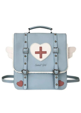 Элегантный голубой рюкзак в форме ранца, украшенный милыми и готическими элементами. Отличается большим белым сердцем с розовым крестом по центру и надписью "Sweet Girl". Идеальный выбор для ценителей стиля Лолита, аниме-моды и уникальных аксессуаров. Размеры 31*29*10 см Длина большой ручки: 81 см