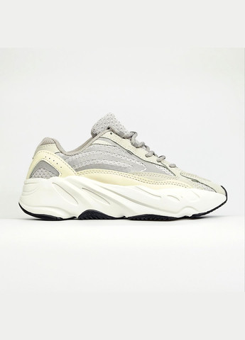 Кроссовки Adidas Yeezy 700 v3 - третья и абсолютно эволюционная версия массивного силуэта семисотых сочетает в себе классическую эстетику баскетбольного стиля с современным образом жизни. Релиз зимы 2019 года отличается от предшественников своим футуристическим дизайном и светящимися боковыми панелями в форме крыльев ангела. Дебютная расцветка V3-Yeezy 700 V3 'Azael' - выполнена в сетчатом материале с жесткими накладками. Черный нейлоновый язык спрятан под совершенно новой системой шнуровки, петли которой спрятаны изнутри боковых панелей. Мощная белая костяная подошва Yeezy 700 V3 'Azael' почти в два раза больше, чем другие модели Yeezy 700 и придает гораздо больше комфорта при ходьбе и притягивает взгляды окружающих. Важным отличием Yeezy 700 V3 'Azael' от других моделей линейки 700-х является отсутствие классического материала Boost в основе подошвы. Adidas Yeezy 700 V3 'Azael' оснащены стельками Ortholite с эффектом памяти.