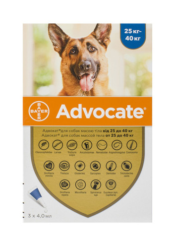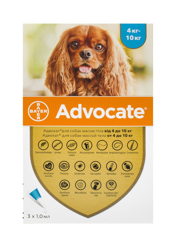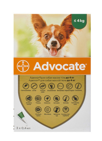Препарат Адвокат® – универсальный очиститель кожи от паразитов, главная задача которого – уничтожить кожных клещей и остановить повреждение кожи и зуд. Кроме того, Адвокат активно борется с блохами, вшами и широким спектром гельминтов: сердечными и подкожными дирофиляриями, легочными, глазными и желудочно-кишечными нематодами. Адвокат ® бережно избавит любимца от ушного клеща всего за 1 применение. Адвокат производства известной фармацевтической компании с мировым именем Bayer, обеспечивает то, что другие подобные препараты только обещают: широкую защиту от инвазий широкого спектра внутренних и внешних паразитов у собак и кошек – все это в одном продукте и с помощью первой же дозы. Препарат Advocate – это средство для лечения и профилактики паразитов, живущих на кошке и заболеваний вызванных паразитами; быстро и эффективно устраняет паразитирующих на кошках насекомых и предотвращает их повторный приступ; препарат действует местно, не попадает в кровеносную систему кошки, чем уменьшает риск отравления; средство наносится на холку животного, скапливается в сальных железах, что продолжает его действие. Ключевые свойства Адвокат: Лишает отодектоза (ушного клеща) только за 1 обработку. Быстро избавляет от блох. Действует на блох контактно, без необходимости укуса и питания кровью, поэтому подходит для лечения аллергического блошиного дерматита. Решение проблемы дирофиляриоза: профилактика, контроль и лечение. Эффективен против кожных клещей: демодекоза, саркоптоза, отодектоза. Возможность подбора индивидуальной схемы лечения демодекоза. Комплексная защита от нематод: желудочно-кишечных, легочных, глазных, а также сердечных (дирофилярий). Преимущества использования препарата Адвокат®: Удобство применения Использовать препарат удобно и просто, капая на холку животного Препарат сохраняет эффективность, даже если животное намокнет Эффективность Эффективность использования препарата Адвокат® доказана в многочисленных исследованиях Уникальный спектр Среди препаратов для кошек и собак Адвокат® обладает уникальным спектром действия. Продолжительность действия Ежемесячное применение обеспечивает непрерывную и длительную защиту от внутренних паразитов в течение всего месяца. Механизм действия Адвокат ® сочетает в себе силу двух активных ингредиентов – имидаклоприда и моксидектина. Моксидектин проникает через кожу в кровь животного и доставляется по крови в разные органы. Конечной мишенью являются гельминты и чесоточные клещи, обитающие в коже животного. Имидаклоприд распространяется по коже животного, а точнее – на его липидном слое, и действует снаружи. Его цель – это блохи, вши и волосоеды. Описание: Прозрачный раствор. Состав: Действующее вещество: 10% имидаклоприда и 1,0% моксидектина. Применение: Для лечения и предупреждения заражения блохами (Ctenocephalidesfelis), лечения аллергического блошиного дерматита, лечения отодектоза (вызванного Otodectescynotis), профилактика дирофиляриоза (уничтожает микрофилярии L 3 и L 4 Dirofilariaimmitosis), лечение 4, незрелые и имаго Toxocaracati, Ancylostomacati, Ancylostomatubaeforme) Дозировка: Минимальная терапевтическая доза 10 мг/кг живого веса имидаклоприд и 1,0 мг/кг веса моксидектина, что эквивалентно 0,1 мл кошки, кг Размер пипетки Объем (мл) Имидаклоприд (мг/кг веса) Моксидектин (мг/кг веса) <4 кг Адвокат ® для кошек до 4 кг 0,4 ми