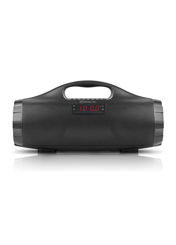 Мультимедийная портативная акустическая система REAL-EL X-737 обладает современным дизайном с качественным звучанием. Широкий функционал "бумбокса" позволяет прослушивать музыку, подключая мобильное устройство, ПК, TV, ноутбуки и т.п., как через AUX, так и через Bluetooth. USB и Micro SD card разъемы позволяют прослушивать аудио-файлы с flash-носителей. X-737 отличный спутник для отдыха на природе, литий-ионный аккумулятор на 4000 мАч обеспечит вас музыкой на достаточно продолжительное время. LED-дисплей. USB, Micro SD (TF). RGB подсветка. Увеличенное время работы. Микрофонный вход с функцией эха. Передача аудиосигнала через Bluetooth. Радиус действия Bluetooth – до 10 метров. Эквалайзер регулирует уровень высоких и низких частот. AUX подключение для использования с ПК, ТВ и другими источниками. TWS – одновременное подключение двух систем к одному источнику аудио сигнала. Характеристики: Тип акустики: портативная Формат акустики: 2.0 Мощность: 28 Вт Частотный диапазон: 90 - 20 000 Гц Wi-Fi: нет Версия Bluetooth: Bluetooth 5.0 USB (для воспроизведения): есть Кардридер: есть Питание: аккумулятор Аудио разъем 4000 мАч FM-приемник: нет Пульт ДУ: нет Подсветка: с подсветкой Защита: нет Диаметр динамиков: 2 х 102 мм Материал корпуса: пластик Цвет: Черный Вес: 2.5 кг Разъем зарядки: micro-USB Дисплей: есть Микрофон: нет Индикация: нет Индикация: нет