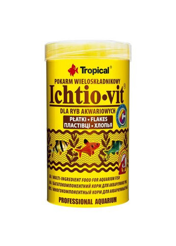 Многокомпонентный корм в виде хлопьев, полученный из высококачественных, отборных, компонентов животного и растительного происхождения. Предназначен для ежедневного кормления всеядных рыб. Оптимально сбалансированный состав и соответствующий набор витаминов и микроэлементов обеспечивает правильный рост и развитие рыб, а также покрывает их энергетические потребности. Ichtio-vit особенно охотно используют в промышленном рыбоводстве, вместе со специальными кормами линии premium и professional. Полноценный корм для декоративных рыб. Состав: рыба и рыбные субпродукты, зерновые, экстракт растительного белка, моллюски и ракообразные, мясо и животные субпродукты, субпродукты растительного происхождения, водоросли, дрожжи, масла и жиры, минералы (в том числе цеолит 1%). Добавки (на кг): витамины, провитамины и химически хорошо дефинируемые вещества подобного действия: вит. A 23 000 IU, вит. D3 1 400 IU, вит. E 90 мг, вит. C 340 мг. Соединения микроэлементов: E1 (Fe) 27,1 мг, E6 (Zn) 7,4 мг, E5 (Mn) 5,6 мг, E4 (Cu) 1,33 мг, E2 (I) 0,16 мг, E8 (Se) 0,16 мг, E7 (Mo) 0,037 мг. Лецитин. Красители. Антиоксиданты. Аналитические компоненты: белок 45,0%, масла и жиры 6,0%, клетчатка 2,5%, влажность 6,0%.