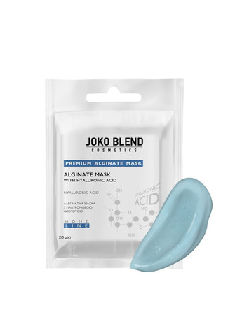 Увлажняющая альгинатная маска для лица Joko Blend с гиалуроновой кислотой, 20 г Альгинатная маска с гиалуроновой кислотой Joko Blend – это интенсивный уход и увлажнение для сухой, обезвоженной и зрелой кожи. Она глубоко насыщает клетки влагой, разглаживает морщинки, восстанавливает упругость и тонус кожи. При регулярном использовании лицо имеет свежий, подтянутый и ухоженный вид. Основные свойства: интенсивно увлажняющая кожу; выравнивает рельеф и тон лица; стимулирует регенерацию клеток эпидермиса; очищает поры, устраняет загрязнения и ороговевшие клетки; улучшает микроциркуляцию и повышает упругость кожи; борется с воспалительными процессами и признаками старения. Активные компоненты: гиалуроновая кислота – глубоко увлажняет, разглаживает морщины, возвращает коже гладкость и мягкость; альгинат натрия – выводит токсины, сужает поры, поддерживает водный баланс, делает кожу более упругой; витамины – нормализуют клеточный метаболизм, замедляют старение, улучшают тонус и цвет лица. Кому подходит Маска для лица с гиалуроновой кислотой подходит для сухой, чувствительной, обезвоженной, тусклой и зрелой кожи. Рекомендована для ухода после 25 лет или по первым признакам потери упругости. Преимущества: обеспечивает салонный эффект подтянутой кожи на дому; глубоко увлажняет без ощущения липкости; способствует быстрому обновлению клеток; делает кожу более гладкой, нежной и упругой; помогает уменьшить проявление морщин и усталого вида. Разведите содержимое пакета водой комнатной температуры до консистенции густой сметаны. Быстро нанесите шпателем на очищенное лицо (можно на глаза и губы) толстым слоем. Оставьте до полного застывания (10-15 минут). Снимите маску одним движением – от подбородка до лба. Остатки смойте водой, нанесите увлажняющий крем или сыворотку. Объем и форма выпуска: Вес: 20 г. Порошок для разбавления водой, одноразовое использование.