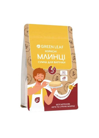 Смесь для приготовления Полезных Блинчиков без сахара Dreen Leaf Блины – это универсальное блюдо, которое может стать любимым завтраком для всей семьи. Сделать их не только вкусными, но и полезными поможет готовая смесь для блинов от Green Leaf. Она создана для тех, кто ценит качество и пользу, но не собирается жертвовать вкусом или тратить много времени на приготовление. В составе 100% натуральных ингредиентов. В состав смеси для выпекания блинов входят полезные пищевые волокна, которые способствуют улучшению пищеварения и общего самочувствия. Смесь создана с учетом современных требований к здоровому питанию, ведь не содержит глютена, сахара и лактозы, а также является низкокалорийной. В ней также нет продуктов животного происхождения, поэтому она идеально подойдет для веганов. Преимущества смеси для блинов Green Leaf: Просто и быстро. Для приготовления блинов понадобится минимум времени – всего 5 минут на подготовку смеси к жарке. К ней стоит добавить только три ингредиента, которые есть на кухне у каждого: яйца, молоко и масло. Процесс будет интересным для всей семьи, ведь готовить со смесью от Green Leaf можно вместе с детьми. Полезно. Благодаря сбалансированному содержанию БЖУ (белков, жиров и углеводов) смесь помогает поддерживать запас энергии и ощущение сытости в течение всего дня. Безглютеновые блины от Green Leaf – это источник необходимых питательных веществ и отличный выбор для здорового образа жизни. Универсально. Блины станут отличным завтраком или легким перекусом. Green Leaf предлагает к ним несколько топингов: шоколадный, кокосовая карамель и сгущенное молоко. Состав: рисовая мука, натуральные подсластители (сладкая стевия GREEN LEAF, мальтитол), крахмал из тапиоки, гречневая мука, амарантовая мука, соевая мука, кукурузная мука, пшенная мука, пищевые волокна, соль розовая гималайская, ванилин 0,05%. Питательная пищевая ценность на 100 г: Энергетическая ценность 311 ккал / 1302 кДж Белки 9,7 г Жиры 1,6 г Углеводы 68 г Рецепт знакомого с детства завтрака Взбейте молоко с яйцами и растительным маслом и добавьте смесь. Тщательно вымешайте все составляющие, чтобы масса стала однородной, без комочков. Жарьте блины с обеих сторон на разогретой сковороде. Вес: 300 г Производитель: Украина