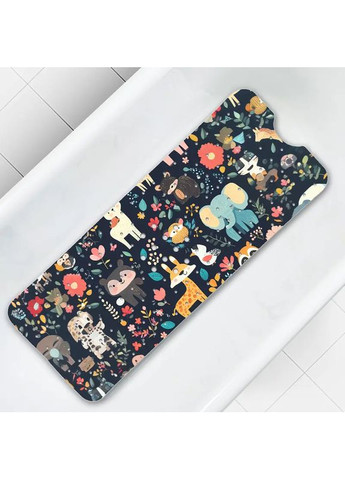 Цветной коврик для ванны с рисунком лесных и африканских животных на присосках с дренажными отверстиями — машинная стирка, ПВХ, для душа, декор для дома, защита пола. На темном фоне изображены мультяшные зверьки: жираф, медвежонок, слон, лиса, панда, енот, тигр, зебра, коала и другие лесные и саванные обитатели. Такой дизайн понравится и детям, и взрослым. Он устойчив к влаге, легко стирается в машинке и защищает от скольжения. Преимущества: Яркий дизайн с животными (жираф, медведь, слон, панда, зебра, тигр и др.). ванной комнаты Размер: 101×40 см Материал: ПВХ (поливинилхлорид)