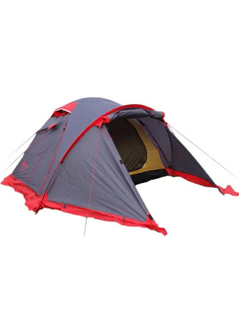 Палатка Tramp Mountain - трехдуговая модель полусферической формы с двумя тамбурами и двумя входами. Внешний тент выполнен из прочного устойчивого к ультрафиолетовому излучению материала - Polyester PU 190T75D/190T Diamond с усиленным плетением нитей - RipStop и PU-покрытием, которое обладает водозащитой 8000 мм водяного столба, что гарантирует защиту от проливного ливня. Внутренняя палатка сшита из дышащего материала, вверху предусмотрены сетчатые вставки для вентиляции, по бокам расположены выходы, закрывающиеся на молнии, для быстрого доступа к вентиляционным клапанам во внешнем тенте, не придется выходить на улицу во время ливня или сильного ветра, вопросы с вентиляцией можно решить изнутри палатки. Дно выполнено из прочного полиэстера, который обладает водозащитой 10 000 мм водяного столба. Входы во внутреннюю палатку продублированы антимоскитными сетками, при необходимости внутренняя и внешняя дверь сворачиваются, внешнее полотно прикрепляется к тенту специальными защелками, а внутреннее полотно прячется в сетчатый карман. По бокам расположены много сетчатых карманов для личных вещей. По периметру внешнего тента предусмотрена снего-ветрозащитная юбка, которую для улучшения вентиляции в летний период можно свернуть и зафиксировать специальными креплениями. В ветровые оттяжки вплетены светоотражающие нити и на вентиляционных клапанах есть вставки со светоотражающими элементами. Устойчивость конструкции обеспечивает алюминиевый каркас с диаметром трубки 8,5 мм и трехгранные алюминиевые колышки. Палатка Tramp Mountain - это хороший вариант всесезонной экспедиционной палатки для пешего и горного туризма.