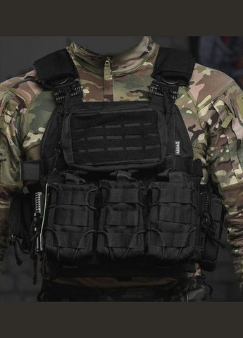 Плитоноска черного цвета Asdag с 4 точками быстрого сброса — это современная тактическая разгрузочная система, идеально подходящая для ношения бронеплит размером 25x30 см и размещения различного военного снаряжения. Изготовлена из высококачественного материала Cordura-1000D, она обеспечивает надежную защиту жизненно важных органов, гарантируя комфорт даже в экстремальных условиях. Эргономичная конструкция позволяет сохранять полную подвижность, не ограничивая свободу движений при выполнении тактических задач. Система MOLLE и LASER CUT предоставляет возможность индивидуальной настройки для размещения дополнительных подсумков, магазинов и другого оборудования. Характеристики: Тип: Плитоноска с быстрым сбросом Материал: Cordura-1000D Цвет: Черный Размеры бронеплит: 25x30 см Система крепления: MOLLE, LASER CUT Комплектация: Плитоноска 4 подсумка для магазинов 1 подсумок для рации 1 подсумок для гранаты 1 подсумок для аптечки/личных вещей 4 точки быстрого сброса Преимущества: Высокая прочность благодаря материалу Cordura-1000D Быстрый сброс для экстренных ситуаций Эргономичный дизайн для комфортного ношения Система MOLLE, LASER CUT для индивидуальной настройки Надежная защита и максимальная подвижность Подходит для использования в боевых и тактических условиях Плитоноска Asdag с 4 точками быстрого сброса — это идеальный выбор для тех, кто ищет надежную, прочную и удобную тактическую систему. Она обеспечивает максимальный комфорт и эффективность при выполнении боевых задач.