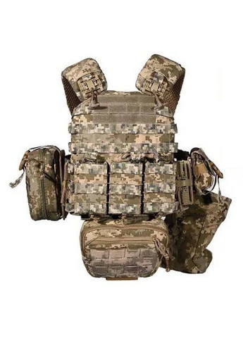 Плитоноска М6 с комплектом подсумков (без плит) Плитоноска М6 с подсумками под стандартные плиты 25х30см представляет собой жилет с местами крепления бронированных плит. Предназначена для комфортного ношения. Жилет достаточно удобен в использовании и прослужит долгое время. Плитоноска изготовлена из высоко прочного материала - Cordura 1000D, что обеспечивает ее невероятную износостойкость. Этот материал отлично держит форму, не деформируется при намокании, устойчив к истиранию и высоким нагрузкам. Особое плетение нитей обеспечивают полную водонепроницаемость. Преимущества: Высокая прочность; Долговечность; Легкий вес; Анатомическая форма; Регулируемые лямки; Устойчивость к солнцу и влаге Характеристики: качественная ткань Cordura 1000 nylon 6.6 стропа полиамид пиксель 20г\м качественная фурнитура YKK и Woojin Plastic система быстрого сброса - Итальянский производитель 2М сетка 3D AirMesh 550 очень удобные плечи скрытая система регулирования регулировка объема от 80 до 130см. Вес комплекта составляет всего 1700 граммов. В комплект входит: Плитоноска М6 1 шт Подсумок под магазин АК 3 шт Подсумок под гранату 1 шт Подсумок под аптечку (ЭЛИТ) 1 шт Подсумок под сброс 1 шт Сумка-напашник 1шт. Цвета в наличии: Мультикам, Пиксель наличие уточняйте, пожалуйста у менеджера-консультанта