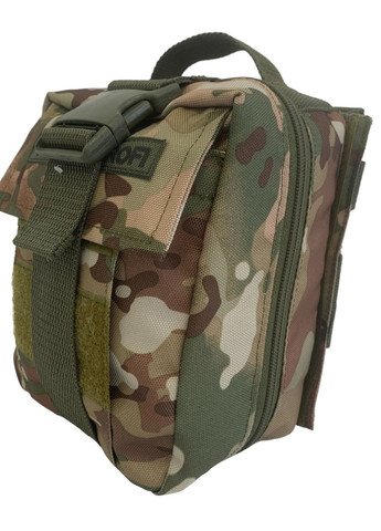 Аптечка первой помощи Mil-Tec First Aid Pack Midi 16025910 Небольшая аптечка, которую можно взять с собой куда угодно. Она изготовлена из прочного полиэстера и оборудована крепежной системой, которая позволяет прикрепить ее к рюкзаку или снаряжению, оборудованному ремнями MOLLE/PALS . Ее можно носить на ремне. Аптечка закрывается на двустороннюю молнию. Внутри итога есть отделения, облегчающие компанию снаряжения. Его следует иметь у себя в каждой поездке в поле. Компактный размер означает, что аптечка не займет много места в рюкзаке. В комплект входит базовое оборудование, в состав которого входят: - одна повязка 50×50 мм, - шесть английских шпилек, - пять очистных салфеток, - один рулон пластыря 40 мм х 1 м, - два бинта 75 мм х 4 ,5 м, один бинт компрессионный 15 мм х 4,5 м, - одна пара виниловых перчаток, - один лейкопластырь, - ножницы. Технические характеристики Цвет: красный Материал: полиэстер Размеры: 150×115 мм Вес: 167 г Материал: Сумка: 100% полиэстер. Производитель: Mil-Tec, Германия