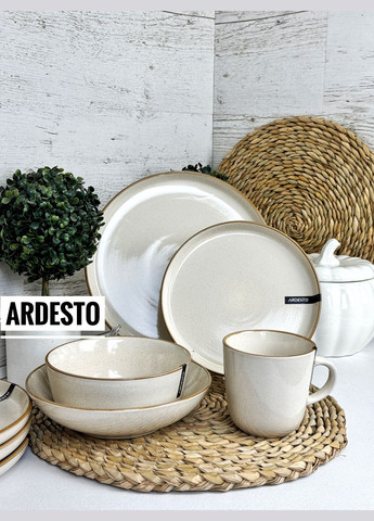 Новинка Ardesto набор керамической посуды серии Apulia! Изготовленная из высококачественной каменной керамики, эта посуда не только крепкая, но и очень элегантная. Глазированное покрытие придает блеск и защищает поверхность, обеспечивая легкую очистку. Современный стильный дизайн делает посуду Apulia идеальным выбором для создания уютной атмосферы во время каждого еды. Это не просто посуда, а произведение искусства, которое подчеркнет ваш вкус и станет гармоничной частью вашего интерьера! Десертная тарелка, диаметром 20.3 см 6 шт; Суповая тарелка, диаметром 20.8 см – 6 шт; Салатник, диаметром 16.2 см2 шт; Чашка объемом 450 мл 6 шт;