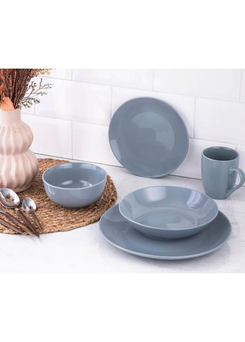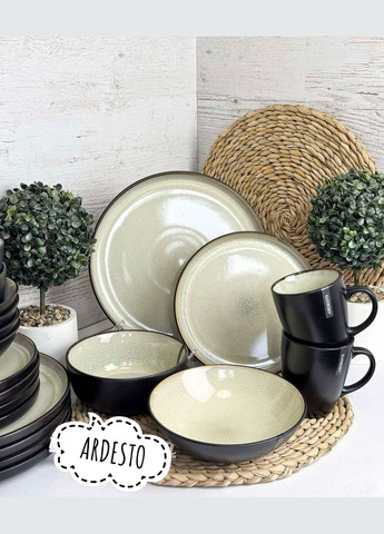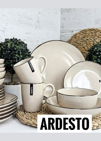 Новинка от Ardesto – набор посуды премиальной серии Andria – это настоящая находка для ценителей изысканного стиля и качества. Изготовленная из каменной керамики, эта посуда сочетает в себе прочность и натуральную эстетику, придавая изысканности любому столу. Набор имеет глубокий сине-серый цвет, который создает эффектную атмосферу на вашей кухне, а золотой ободок придает нотку элегантности и завершенности дизайна. Это идеальный выбор для тех, кто стремится не только к функциональности, но и эстетического удовольствия от каждого приема пищи. В наборе: Обеденная тарелка, диаметром 25.7 см 2 шт; Десертная тарелка диаметром 20.1 см 2 шт; Суповая тарелка, диаметром 21.1 см – 2 шт; Салатник, диаметром 15.1 см2 шт; Чашка объемом 300 мл 2 шт;