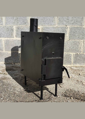 Печка буржуйка Троян на дровах Буржуйка Троян применяется для обогрева помещения площадью до 30 м². Также верхнюю часть печи можно использовать как варочную поверхность (ровная плоскость, которая достаточно нагревается для того, чтобы вскипятить воду в чайнике или приготовить что-нибудь). Характеристики печи-буржуйки Троян: материал печи: чёрная сталь 3 мм; шибер на трубе дымоотвода (с деревянной ручкой); съемные ножки (на резьбовом соединении) что обеспечит выгодность в транспортировке и хранении; 2 полки-искрогасители внутри печи (показаны на фото-схеме); Размеры буржуйки Троян глубина 50 см ширина 25 см высота 49 см (без ножек и трубы) высота ножекк 15 см. вес 38 кг Особенности буржуек Троян Все буржуйки оснащены колосниками (арматура 10 мм), полками в камере сгорания для удержания тепла внутри камеры и удержания вылета искр через дымоотвод, съемные ножки (на резьбовом соединении). Раскрой печи выполняет плазменную резку с ЧПУ, что гарантирует точность размеров и равенство всех сторон (элементов). Все буржуйки изготовлены из черной стали. Есть возможность укомплектовать эту буржуйку нержавеющими дымоотводами 0.5 или 1 м. Трубы 0.5 м удобнее в транспортировке: 4 трубы помещаются внутрь печки. Окрашено термостойкой черной краской.