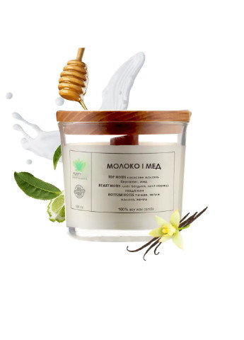 TOP NOTES кокосовое молоко, бергамот, мед HEART NOTES лист гвоздики, лист корицы, кардамон BOTTOM NOTES печенье, теплое молоко, ваниль Время горения: 60 грамм – 15 часов Мягкий, теплый и безумно уютный аромат! Чтобы создать такое настроение прямо у себя дома, теперь не обязательно печь вкусности. Аромасвечка все сделает за Вас. Вам остается только наслаждаться прекрасным вечером ИНСТРУКЦИЯ ПО ИСПОЛЬЗОВАНИЮ АРОМАСВИЧКИ: Чтобы свеча горела равномерно и лучше отдавала аромат, есть определенные рекомендации, соблюдая которые, она прослужит Вам дольше и качественнее: Каждый раз зажигая свечу, дайте верхнему слою воска полностью расплавиться (около часа), так не будет образовываться туннель вокруг фитиля, свеча будет гореть дольше и выглядеть эстетичнее. Перед зажиганием свечи подрезайте фитиль до 5 мм (можно просто отломить обгорелый край рукой). Это нужно для того, чтобы пламя было ровным, не коптилось, а обгоревшие угольки не падали в воск. Не задуйте свечу! Чтобы не испортить аромат свечи запахом гари – достаточно просто накрыть ее крышечкой и она сама погаснет за несколько секунд без доступа кислорода. А потом сразу открыть ее, чтобы дым вышел и не смешался с аромамаслами. Не оставляйте зажженную свечу без присмотра. Размещайте как можно дальше от воспламеняющихся поверхностей. Не курите свечу больше 3-4 часов, воск может перегреться и аромат станет менее ярким. В крайнем случае, можно погасить свечу на 15 мин, дать ей остыть, а затем зажечь снова. ОСТОРОЖНО! Во время горения стакан сильно нагревается! Не оставляйте в пределах доступа животных и детей. ПРЕИМУЩЕСТВА НАТУРАЛЬНЫХ АРОМОСВИЧЕК ОТ PURITY: Изготовлены из 100% экологически чистого соевого воска вручную, Не выделяют вредных токсических веществ. Горят медленнее и дольше Наши натуральные свечи коптят на 90% меньше, чем парафиновые Благодаря натуральному деревянному фитилю создается успокаивающий звук камина (потрескивание). Ароматические масла премиум-качества И как не вспомнить о терапевтическом эффекте и влиянии каждого из запахов!