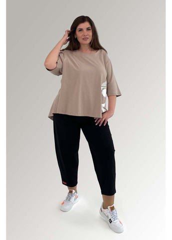 Летняя туника из вискозы (футболочная ткань). Ткань легкая, приятная к телу, дышит. Туника достаточно свободной формы А-силуэта, ткань эластичная – тянется. Длина рукава до локтя, позволяет скрыть то, что не хотелось бы показывать. Низ асимметричный (перёд короче чем зад изделия). На тунику нанесен узор белым накатом. Очень стильная и необходимая базовая вещь в гардеробе каждой женщины. Состав: 95% вискоза, 5% эластан. Цвет: капучино. Длина изделия по спинке: 74-76 см (в зависимости от размера). Длина рукава: ¾ (34-36 см). Вырез горловины: округлый. Декоративные элементы: авторский дизайн . Длина юбки\платья: Миди. Конструктивные элементы: без карманов. Модель туники: А-силуэт. Фактура материала: текстильный. Сезон: Лето. Размер на модели: 54/56. Страна производства: Турция.