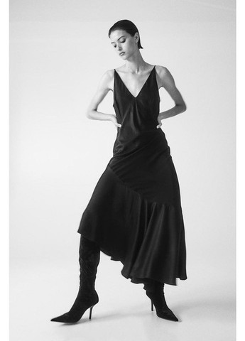 Асимметричный вырез горловины (Asymmetrical Neck): Это ключевая модная особенность. Вырез может быть на одно плечо (one-shoulder), либо иметь неравномерную линию, создающую современный и уникальный вид, привлекая внимание к линии шеи и ключиц.