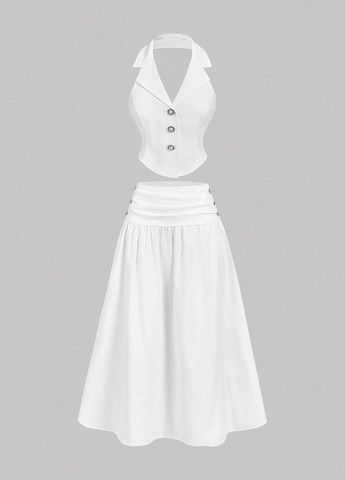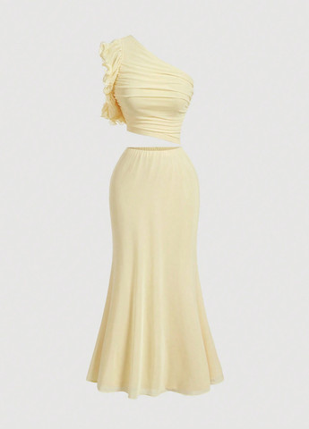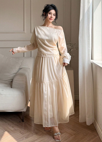 Комплект из двух предметов DAZY – абрикосовый. Этот элегантный комплект состоит из блузки и юбки. Блузка имеет асимметричный вырез и рукава-бишоп. Юбка длинная, плиссированная, А-силуэта с оборкой по низу. Комплект изготовлен из 100% полиэстера. Подходит для торжественных случаев и вечерних мероприятий.