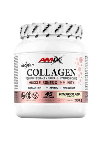 Amix Collagen Viscofan Drink — коллагеновый напиток для суставов, кожи и молодости Amix Collagen Viscofan Drink — это инновационная добавка в формате вкусного напитка, созданная для тех, кто заботится о здоровье суставов, эластичность кожи и крепкость связок. Благодаря гидролизованному коллагену Viscofan® в сочетании с гиалуроновой кислотой, астаксантином, витамином C и магнием, этот комплекс обеспечивает максимальную биодоступность и быстрый результат. Преимущества Amix Collagen Viscofan Drink: Поддерживает здоровье суставов: уменьшает воспаление, боль и улучшает подвижность. Укрепляет связки и сухожилия: помогает поддерживать высокую физическую активность. Омолаживает кожу: повышает упругость, эластичность и уменьшает морщины. Улучшает состояние волос и ногтей: способствует росту и укреплению. Высокая усвояемость благодаря гидролизованной форме коллагена Viscofan®. Комплексное действие: благодаря гиалуроновой кислоте, астаксантину, магнию и витамину C. Удобный в использовании: легко растворяется в воде, имеет приятный вкус. Состав (на порцию): Гидролизованные пептиды коллагена Viscofan® Гиалуроновая кислота Астаксантин Витамин С — стимулирует естественный синтез коллагена Магний — поддерживает кости, уменьшает усталость Рекомендации по применению: Раскрыть 6,6 г порошка (1,5 мерные ложки) в 200 мл воды. Принимать 1-2 раза в день, желательно между приемами пищи или после тренировки. Для кого подходит: Идеально подходит для активных людей, спортсменов, женщин 30+, а также всех, кто хочет сохранить молодость, упругость кожи и подвижность суставов. Заказывайте Amix Collagen Viscofan Drink уже сегодня, чтобы почувствовать преимущества коллагена нового поколения на себе!