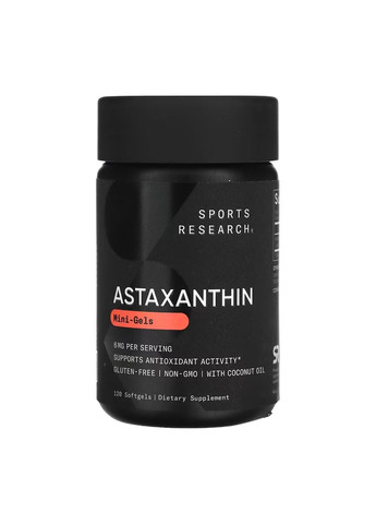 Sports Research Astaxanthin 6 mg – это мощный природный антиоксидант из группы каротиноидов, получаемый из морских микроорганизмов, таких как водоросли Haematococcus pluvialis. Астаксантин известен своей способностью нейтрализовать свободные радикалы и поддерживать здоровье кожи, глаз, сердца и иммунной системы. Рекомендуемое использование Взрослым принимать по 1 мягкой капсуле каждый день во время еды или по рекомендации квалифицированного медицинского работника. Другие ингредиенты Органическое кокосовое масло первого отжима, мягкая желатиновая капсула (желатин, растительный глицерин, очищенная вода), токоферолы. Содержит: Орехи (кокос).