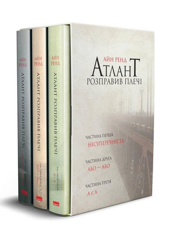 "Атлант" magnus opus Айн Рэнд, который она писала 12 лет. Согласно данным опроса Библиотеки Конгресса США, это вторая после Библии книга, изменившая жизнь американских читателей. Рэнд в многочисленных интервью американской печати утверждала: сть жизненного процесса». Бурные обсуждения фундаментальной трилогии, великой «политической притчи» продолжаются с 1957 года, со дня первого издания на ней выросли три поколения американцев, миллионы «атлантов» разлетелись по всему миру. Три части трилогии названы в соответствии с основными законами логики: "Непротиворечивость", "Или-или, "А есть А". В последней части своего фундаментального романа идей Айн Рэнд изображает целостную философскую систему, до сих пор вызывающую страстные дискуссии, где от восторга к возмущению — один шаг. Страна, которую оставили ее создатели, изобретатели и мыслители, обречена на войну, голод и смерть. Власть захватывают невежды, коррупционеры и мародеры. История продолжается хотя бы потому, что одна волевая женщина по имени Дагни Таґарт убеждена, что совершенный мир настоящих ценностей существует. Она пытается сломать сценарий неизбежной катастрофы. Ее Атлантида не миф. В мире еще есть храбрецы, способные создать общественный строй, где нет конфликтов, не возникает потребности в самопожертвовании, ни один человек не представляет угрозы для целей других. Мятежные атланты знают, что разум все-таки победит. Риторический вопрос, кто такой Джон Галт, на самом деле имеет ответ, а невероятные идеи своего воплощения, ошеломляющего человеческое воображение.