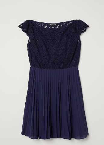 Платье длиной до колена из ткани с кружевом сверху. Вырез лодочкой и короткие цельнокроеные рукава. Лиф на атласной подкладке с корсетными косточками и потайной молнией сбоку. Отрезное по талии, плиссированная юбка. На подкладке. ***Размер - 48 Длина изделия - 99,00 см Объем груди - 102,00 см Возможно повреждение бирки