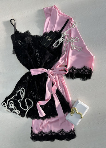 Изысканный домашний комплект пеньюар и халатом из шелка/атласа с французском кружевом.