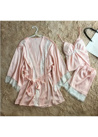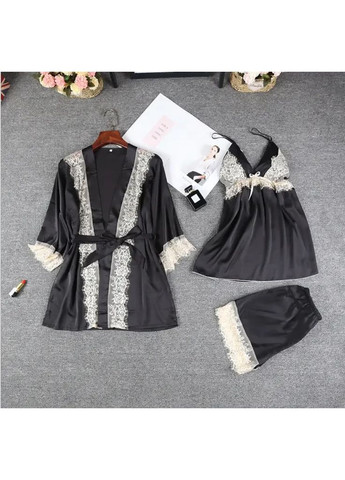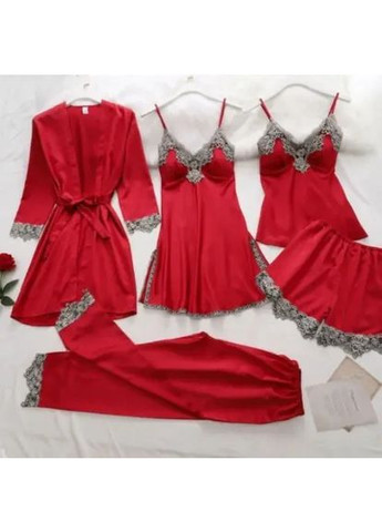 Атласный комплект. Материал: плотный атлас, кружево. Кружево мягкое. Комплектация: халат, пеньюар, пояс, брюки, пижамный комплект-двойка. Бретельки регулируются по высоте. Размерная сетка S - М ОС 80-92 см. ОГ 70-88см. L - XL ОС 86-110 см. ОГ 85-102 см 2XL - 3XL 102-124 см. ОГ 80-116 см.