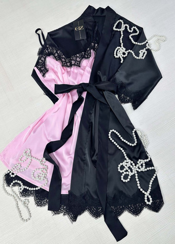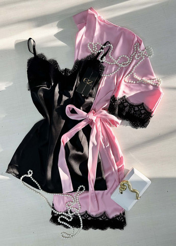 Изысканный домашний комплект пеньюар и халатом из шелка/атласа с французском кружевом. Неподражаемый и безупречный крой комплекта из халатика и пеньюара из шелка, позволяет идеально подчеркнет фигуру абсолютно не сковывая движение,а французское кружево придаст вашему образу нежность и романтичность.Удобный комплект станет вашим постоянным спутником не только дома ,но и на любом курорте мира. Комплект выполнен из приятного к телу материала шелк/атлас. Модель украшена нежным французским кружевом.