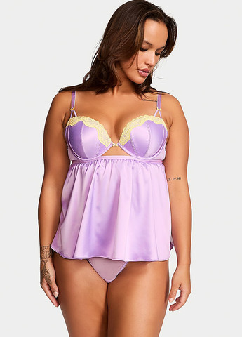 Нежный пеньюар от Victoria´s Secret. Бюст Push-Up на косточках, украшен кружевом. Сзади сеточка. Застежка сзади на крючки. Регулируемые бретели, украшены бантиками. Пеньюар из невесомой атласной ткани спереди и сетчатой ткани сзади. Отличное качество.