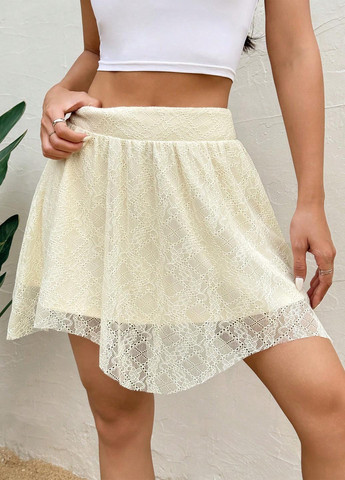 Женская юбка-трапеция с эластичной талией и кружевом. Эта юбка имеет естественную линию талии. Она включает в себя ажурную фактуру и слегка эластичную ткань. Стандартный крой.