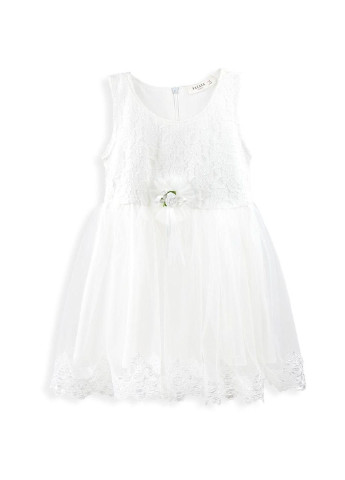 Шикарное нежное нарядное платье для девочки.Очаровательное, нарядное платье приятного молочно-белого цвета, без рукавов, с лёгкой фатиновой юбкой – отличный вариант для любого торжественного случая.Платье прямого силуэта, отрезное по линии талии, на подкладке из хлопкового трикотажа, с добавлением небольшого % эластана для поддержания формы.Верх платья маечного типа (тянется), из нежного ажурного гипюра с цветочным узором, юбка – воздушный, лёгкий и очень нежный присобранный фатин.Линия соединения верха платья с юбкой хорошо тянется, благодаря вставленной силиконовой резиночке.Сзади застегивается на потайную капроновую молнию с лёгким ходом.Платье очень красиво украшено по низу шикарным, ажурным жемчужным кружевом, а на линии талии милым и нежным цветочным декором из фатина и атласных лент.Замечательное платье! Смотрится очень стильно, красиво и элегантно. Благодаря своему натуральному трикотажному основанию платье будет отлично регулировать воздухо и теплообмен, а благодаря эластичности, будет безупречно сидеть на фигуре и в выгодном свете подчеркнёт все её достоинства.