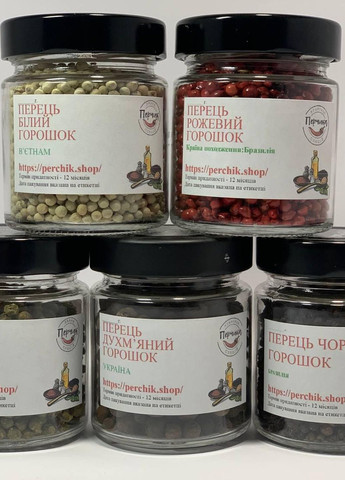 Состав: Смесь включает перец черный, белый, зеленый, розовый и душистый молотые перцы.