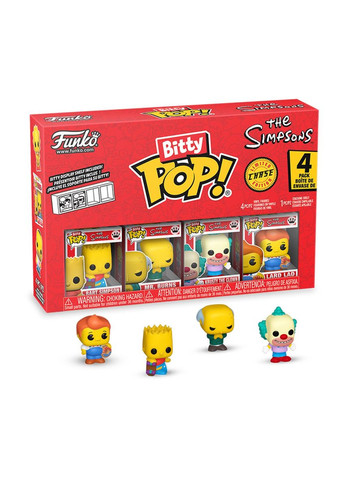 Набор игровых фигурок BITTY POP! серии «Симпсоны» - БАРТ (4 фигурки в асс.) станет замечательным подарком как для коллекционеров, так и для поклонников культового мультериала «Симпсоны». Дизайн выполнен в японском аниме-стиле «тиби» – персонажи с маленьким туловищем и большой головой. Высокая детализация обеспечивает максимальное сходство с героем и позволяет сделать игровой процесс более увлекательным! В наборе 4 виниловые фигурки Барт и таинственная фигурка Битти Поп! Интересно, какую фигурку найдете вы? Игровые фигурки понравятся как детям, так и взрослым. Игровые фигурки BITTY POP! способствуют развитию воображения, умению играть и эмоциональному развитию. Размер каждой фигурки около 2,5 cm (в зависимости от аксессуаров). Создайте собственную коллекцию BITTY POP! Рекомендовано для детей от 3 лет. Характеристики: Развивающий – Эмоциональное развитие, Умение играть, Воображение; Звук – нет; Серия – Симпсоны; Питание – не нужно; Батарейки входят в комплект – Нет; Бренд – Funko; Свет – нет; Возраст – 3-16; Звук – нет; Страна происхождения – КНР; Размер игрушки без упаковки длина – 2,4; Размер игрушки без упаковки ширина – 1,5; Размер игрушки без упаковки высота – 3,2; Вес игрушки без упаковки – 0,06; Размер игрушки в упаковке ширина – 3; Размер игрушки в упаковке высота – 9,3; Размер игрушки в упаковке длина – 14; Ограничение по возрасту – до 36 месяцев; В комплект входит – 4 фигурки; Гарантия – Гарантия не распространяется; Материал – винил; Срок годности, мес. - неограниченный;