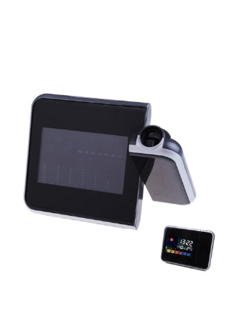 Цифровой будильник с проектором совмещает в себе функции часов, календаря, будильника, метеостанции, которые моментально измерят влажность воздуха и температуру в помещении. Кроме того данный прибор оснащен функцией проецирования времени на стены, потолок или любую другую ровную поверхность, а вся информация выводится на удобный, цветной дисплей. Дисплей оснащён функцией подсветки, поэтому вы сможете увидеть отображённые на нём цифры даже ночью. Удачное дизайнерское исполнение позволяет устройству прекрасно вписываться в любой дизайн помещения. Цифровой будильник с проектором будет отлично смотреться на вашем прикроватном столике, на рабочем столе, на любой полке. Устройство работает от обычных батареек типа ААА и не нуждается в подключении к электрической сети, поэтому его можно использовать не только дома, но и брать с собой в поездки.Данные об измерениях и времени отображаются на большом дисплее, занимающем около 90% размера лицевой панели прибора. Встроенные функции: календарь; будильник; термометр; часы; гигрометр. Метеостанция. Характеристики: тип дисплея: цифровой; формат часов 12/24. Календарь: 2001-2099 года. Будильник. LCD дисплей со светодиодной подсветкой (от блока питания подсветка будет гореть постоянно, без - до 7 секунд после нажатия). Диапазон измерения температуры: -9.9 ~ + 60 градусов. Диапазон измерения влажности: 20% ~ 90%. Показывает комфортность: влажно, комфортно, сухо в зависимости от значения влажности и температуры. Память: max/min показателей температуры и влажности воздуха. Метеостанция: отображает предстоящую погоду с изображением солнечной, частично солнечной, облачной или дождливой погоды. LED-проектор, вращение проектора на 180 градусов, проекция времени на любую плоскость красным цветом (функция постоянной проекции времени отсутствует). Питание: 2хААА батареи (в комплект не входят)/DC 4.5 В вход (кабель в комплект не входит). Цвет: черный. Вес: 0.25 кг. Размер: 15x11x2.5 см.