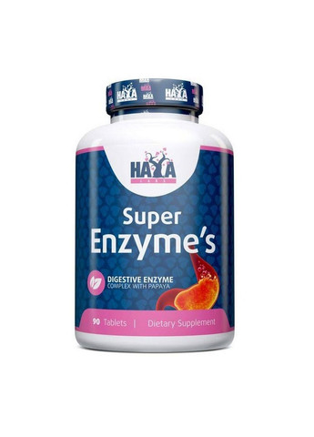 Haya Labs Super Enzymes - это пищевая добавка в форме таблеток, состоящая из комплекса пищеварительных ферментов, которые принимают участие в расщеплении и усвоении белков, углеводов и жиров.Особенности:Комплекс пищеварительных ферментовУлучшает пищеварениеРасщепляет белки, углеводы и жирыСодержит амилазу, протеазу и липазуС бетаином, бромелаином и папаиномС растительными экстрактамиТолько 1 таблетка за прием пищиБетаина гидрохлорид — это кислая форма бетаина, естественный источник соляной кислоты в желудке. Это необходимый компонент пищеварительного процесса, поскольку он помогает разложению и усвоению пищи.Панкреатин содержит комплекс, состоящий из трех основных ферментов – амилазы, протеазы и липазы. Протеаза действует как катализатор накопления белковых молекул в пище за счет химической реакции гидролиза.Мясо входит в число продуктов, которые усваиваются дольше всего (от 5 до 24 часов), и именно здесь протеаза поможет облегчить тяжесть в животе. В случае спортсменов, которые потребляют больше мяса в своем режиме питания, фермент поможет усвоению белка и набору мышечной массы.Амилаза — это фермент, который способствует быстрому расщеплению сложных углеводов до простых сахаров, усваиваемых тонким кишечником. Липаза — это пищеварительный фермент, выделяемый поджелудочной железой, также известной как железа, расположенная позади брюшной полости. Липаза отвечает за расщепление жира.Формула включает два других экстракта, папайи и ананаса. Бромелайн обычно встречается в ананасе, а папаин — в папайе. Они стимулируют распад белка. Ингредиенты дополнены экстрактом желчи говядины, источником холевой кислоты.Как принимать:Принимайте по 1 таблетке во время или после каждого приема пищи.Содержание элементов в 1й порции1 таблетка, Бетаин гидрохлорид 200 мг, Панкреатин 10Х 100 мг, - амилаза 22 000 USP, - протеаза 22 000 USP, - липаза 2 000 USP, Экстракт бычьей желчи 100 мг, - холиевая кислота 45 мг, Папаин (из плодов папайи) 100 000 FCCPU, Бромелайн (из стебля ананаса) 120 GDU, Ингредиенты, Целлюлозная камедь, микрокристаллическая целлюлоза, магния стеарат, кремнезем