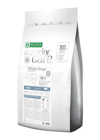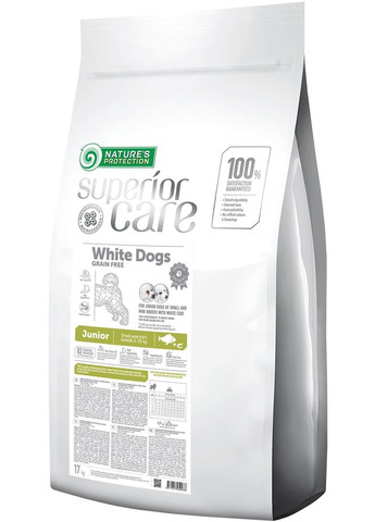 Сухой беззерновой корм Nature's Protection Superior Care с белой рыбой для юниоров малых и миниатюрных пород – это полноценный и сбалансированный корм Супер Премиум сегмента с источником белка и сырья высочайшего качества, что помогает бороться с коричневыми пятнами от слез и поддерживать кожу и шерсть здоровыми. Корм содержит формулу Tear Stains off – тщательно подобранный комплекс аминокислот и хорошо сбалансированных ингредиентов в составе. Обогащен компонентами, обеспечивающими отличную производительность для хорошего самочувствия питомца. Полноценный состав сухого корма не только обеспечит вашего питомца всеми необходимыми питательными веществами, но и имеет отличные вкусовые качества и усвояемость. Беззерновой сухой полнорационный корм с белой рыбой и крилем для щенков и юниоров малых и миниатюрных пород (весом от 1 до 10 кг) с белоснежной шерстью. Это сбалансированное питание, необходимое любимцу во время роста и развития для поддержания отличного здоровья и красоты. Почему стоит приобрести? Отличается оптимальным содержанием питательных веществ, витаминов и микроэлементов, адаптирован к конкретным потребностям растущих собак малых пород с белой шерстью и чувствительным пищеварением Эта диета без ингредиентов, содержащих глютен, помогает избежать расстройств пищеварительной системы и появления у щенка аллергических реакций Изготовлен на основе белой рыбы и антарктического криля, 82% протеина в корме — животного происхождения, благодаря чему он привлекателен на вкус, легко переваривается и усваивается организмом. Помогает снизить риск возникновения бурых пятен от слез под глазами, а также слюны вокруг бороды и лап, разработанный с целью поддержания необходимого прозрачного состава слезной жидкости Содержит витамины А, Е, D3, биотин, цинк, железо, йод, селен и другие важные микроэлементы, поддерживающие здоровье любимца в хорошем состоянии Ненасыщенные жирные кислоты Омега-3 и Омега-6 обеспечивают нормальную работу мозга и сердечно-сосудистой системы собаки, а также помогают значительно улучшить качество ее шерсти, снизить риск возникновения дерматитов и воспалительных процессов Специальная добавка в виде натурального минерала вулканогенно-осадочного происхождения MicroZeoGen способствует лучшему усвоению микроэлементов, выведению токсинов и отличному самочувствию любимца Комплекс с фруктоолигосахаридами и мякотью входящей в состав свеклы помогает стабилизировать кишечную микрофлору и укрепить иммунную систему собаки Экстракт юкки сокращает уровень азотных соединений, уменьшая выделение вредных газов и неприятный запах фекалий Без добавления искусственных красителей и ароматизаторов Размер гранул — 6-8 мм/ Нормы кормления Дать ежедневно из расчета возраста и веса любимца. Соблюдайте нормы кормления, указанные в таблице на упаковке, но учитывайте индивидуальные потребности животного. Суточная норма должна быть подобрана таким образом, чтобы сохранить оптимальный вес растущей собаки. В случае перехода с одного корма на другой желательно делать это постепенно для того, чтобы организм щенка смог адаптироваться к новому рациону. В среднем процесс перехода на новый корм длится 5-7 дней, начиная с незначительного его добавления в привычный сухой корм, заканчивая полной заменой Для достижения наилучшего результат