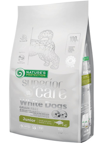 Владельцам белошерстных животных известно, насколько трудно поддерживать идеальный внешний вид своих питомцев. Белая шерсть не только быстро загрязняется и пылится, но и тускнеет, желтеет, особенно у глаз, вокруг пасти, на лапах. Наиболее явно пожелтение шерсти видно вокруг глаз в местах "слезных дорожек, а, как известно, почти 80% животных страдают чрезмерным слезотечением. Но далеко не все подозревают, что красота и нижнее белье зависит не только от косметических средств, витаминов, но и от качества питания. Несбалансированное питание это прямой путь к пожелтевшей блеклой шерсти. Корм для белошерстных животных должен быть изготовлен из натуральных продуктов высокого качества, не содержать искусственных красителей, тщательно сбалансированной рецептуры для поддержания шерсти. Корм Nature's Protection Superior Care Dog Junior Small Breed соответствует этим требованиям и относится к полнорационным кормам супер премиум класса, которые изготавливаются с применением инновационных технологий, максимально позволяющих сохранить полезные свойства продуктов. Корм предназначен для щенков собак мелких пород в возрасте от двух месяцев до десяти месяцев. Преимущества корма Может помочь снизить риск возникновения бурых пятен от слез под глазами и слюны вокруг бороды и на лапах. Корм разработан для поддержания необходимого прозрачного состава слезной жидкости. Основной источник легко перевариваемого белка высшего качества — белая рыба. Антарктический криль – уникальный и 100% устойчивый источник Омега-3 и холина. Подходит для щенков с чувствительной пищеварительной системой. Состав: белая рыба 42% (сушеная и измельченная), сушеный картофель, батат, горох, жир птицы, мука из криля (мин. 4%), жом сахарной свеклы, лососевое масло, динамически микронизированный клиноптилолит (1%), семена льна, фруктоолигосахариды, экстракт юкки, зеленый чай, сушеная календула (источник лютеина). Добавки пищевые / 1 кг: витамин A – 18000 МЕ, витамин D3 –1500 МЕ, витамин E – 530 мг, фолиевая кислота – 1 мг, биотин – 0, 1 мг; моногидрат сульфата железа - 50 мг, безводный йод кальция - 1,5 мг пентагидрат сульфата меди - 5 мг, марганец сульфат моногидрат - 20 мг, сульфат цинка моногидрат - 115 мг, селенит натрия - 0,1 мг. масло. Аналитический состав/1 кг: сырой белок – 26%, сырая клетчатка – 3,5%, сырой жир – 15%, сырая зола – 9%, кальций – 1,2%, фосфор – 0,9%, калий – 0,6%, натрий – 0,4%, Омега-3, жирные кислоты 2,81 %. Нормы кормления: Возраст, месяцы: Норма кормления, г/день Вес собаки, кг 2 4 6 8 10 3 46 77 104 129 153 5 50 84 113 141 166 7 52 87 118 147 178 9 9 10 53 89 121 150 177 12 53 89 121 150 177 У собаки должен быть беспрепятственный доступ к питьевой воде. Рекомендуемая суточная норма делится на 2-3 приема. Объем корма, который съедается собакой за день, может варьироваться в зависимости от самочувствия и активности животного. Фасовка: 1,5 кг; 10 кг, 17 кг
