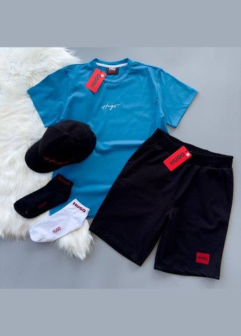 Материал футболка: 100% хлопок (кулир плотность 230, очень хорошее качество) Цвет футболка: черный, белый, голубой Материал шорты: хлопок 95%, эластана 5% (турецкая двухнить) Цвет шорты: черный Шорты карманы без молний Логотипы Размер: S, M, L, XL, XXL Модель: унисекс