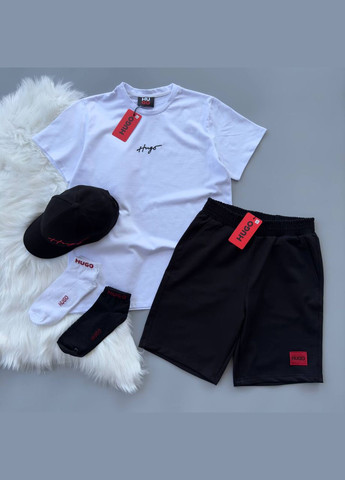 Цвет футболка: черный, белый Цвет шорты: черный Сезон: Весна/Лето/Осень Материал шорты: Турецкая двухнитка пенье 95% хлопок 5% эластана Материал футболка: хлопок 95%, эластан 5% Размер футболки: XXS, XS, S, M, L, XL, XXL Размер шорты: S, M, L, XL, XXL Материал кепка: хлопок 100% Модель: унисекс Логотипы вышивка Лампас вышитый (не принт)