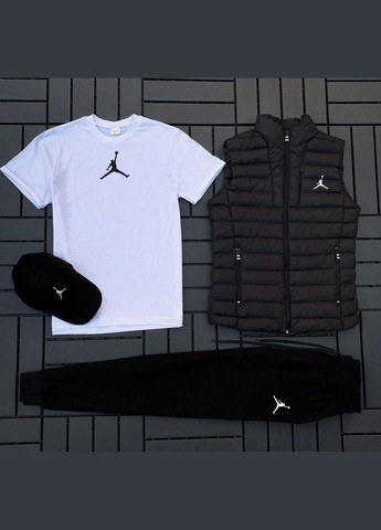 Жилетка черная Материал: водоотталкивающая плащевка Наполнитель: силикон Внутренний карман Размеры: S, M, L, XL, XXL. Производитель: Турция Брюки Материал: Хлопок 85% (плотный котон), полиэстер 10%, эластан 5%. Высокое качество строчек и манжетов. Размеры: S, M, L, XL, XXL. Футболка Приятный мягкий к телу материал. Состав: 100% хлопок, Размеры: S, M, L, XL, XXL. Кепка бейсболка Состав: 100% хлопок Размеры: универсальный, с регулируемой застежкой. Отверстие для вентиляции. Качественно прошита.