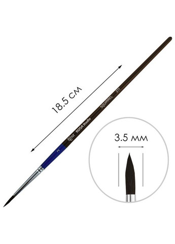 Кисть круглая ROSA Studio с волосами белки. Волос белки мягкий, тонкий и эластичный, благодаря чему у него безупречный контроль над текучестью краски и способность образовывать острый кончик. Спектр применения очень широк: работа с жидкими красками, такими как акварель, гуашь, роспись фаянса и фарфора и многое другое.