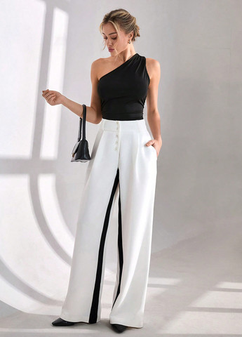 Цвет Черно-белый / Материал Полиэстер / Фасон Палаццо / Высота посадки Высокая талия / Узор Колор блок