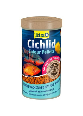 Высококачественный полнорационный корм с натуральными усилителями цвета для здорового и сбалансированного питания цихлид. Богат высококачественными белками и другими питательными веществами для сбалансированного питания. Гранулы содержат натуральные усилители цвета Для интенсивной и яркой окраски, особенно для цихлид с красной, оранжевой и желтой окраской. Формула поддерживает долгую и здоровую жизнь цихлид Чистая вода и улучшенное качество воды благодаря легким для поедания и хорошо усвояемым гранулам Оптимально подобранная белковая смесь для здорового роста Уникальная рецептура и высококачественные ингредиенты без красителей и консервантов Состав: рыба и рыбопродукты, экстракты растительных протеинов, дрожжи, продукты растительного происхождения, жидкие и твердые жиры, моллюски и ракообразные, минералы.Аналитический состав: сырой протеин 47%, сырой жир 9%, сырая клетчатка 2%, влагосодержание 8%.Пищевые добавки: витамин D3 2075 МЕ/кг. Регуляторы кислотности: лимонная кислота 333 мг/кг.