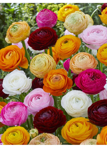 Ранункулюс (лютик) Tomer Mix — смесь разноцветных карликовых сортов, которые будут идеально смотреться в посадках перед бордюром или в любом горшке: от роскошных кашпо до обычных горшков на подоконнике. Их махровые цветы в форме пиона диаметром до 6 см могут быть самых разных цветов, включая красный, белый, розовый, желтый, оранжевый и фиолетовый! Каждый бутон – сюрприз, поэтому этот микс идеально подходит для натуралистических садов или красочных весенних композиций. Цветки держатся на стеблях высотой до 25 см. Обычно они появляются с мая по июль, если посадить их ранней весной. Цветы сорта Tomer имеют правильную форму, плотно набитые лепестки и средний размер – идеальный баланс для среза или выращивания в контейнерах. Цветут долго, постепенно раскрывая все краски. Еще лучше то, что они отлично подходят для срезки, их срок хранения в весе составляет до двух недель. Могут расти как на солнце, так и в полутени – главное обеспечить всеми необходимыми условиями для роста и развития. А в горшках эти красавцы выглядят просто невероятно – попробуйте посадить их и вы – и мы обещаем, вы влюбитесь в них. Идеальные условия для выращивания: клубни лютиков можно сажать тогда, когда земля хорошо прогреется - не менее +10 ° C, и нет угрозы обратных заморозков. Чаще всего это приходится на вторую половину апреля или начало мая. Перед посадкой клубня следует подготовить: замочить их на 8–10 часов во влажной среде (не в воде!), добавив биостимулятор и препарат от болезней, например Фундазол. После этого живые клубни набухнут и станут более мягкими — именно их и высаживают в почву. Почва для ранункулюсов должна быть легкая, рыхлая и хорошо дренированная. Если почва тяжелая — добавьте песок, компост или даже создайте приподнятые грядки. На дно каждой лунки (глубина 15–20 см) положите дренаж — песок или мелкий гравий, а сам клубень высаживайте на глубину 7–8 см, «пальчиками» вниз. Расстояние между растениями – 10–15 см. Если есть угроза похолодания, накройте грядку агроволокном. Полив должен быть умеренным, регулярным, особенно в период роста и бутонизации. Воду лучше отстаивать день и использовать не холодную — комнатной температуры. Переувлажнение или застой воды для ранункулюсов очень вредны – могут загнить клубни. В уходе желтцы не слишком привередливы, но регулярность важна. После сильного дождя нужно разрыхлить почву, чтобы избежать загнивания. Отцветшие цветы желательно обрезать – это стимулирует образование новых бутонов. Подкормку проводят раз в 2–3 недели, чередуя минеральные удобрения с умеренной органикой. Важно помнить, что ранункулюсы плохо переносят пересадку, поэтому лучше сразу высаживать их на постоянное место или в контейнеры. На зиму клубни в Украине обычно выкапывают, поскольку мороз ниже -7°C может уничтожить их.