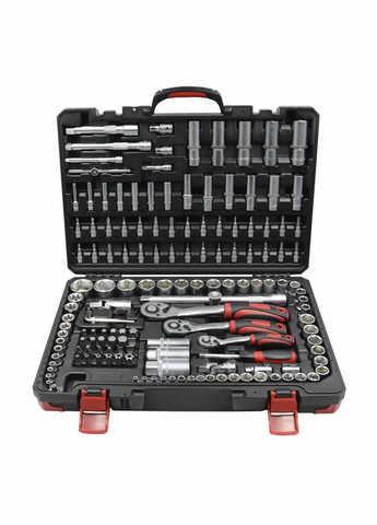 Профессиональный набор инструментов Haisser состоит из 151 предметов. Инструменты выполнены из качественной хром-ванадиевой стали. Набор поставляется в металлическом кейсе, предназначенном для Комплект Haisser состоит из: Ключ трещоточный 1/4. Ключ трещоточный 3/8. Ключ трещоточный 1/2. Вороток на 1/4, 1/2. Удлинитель 1/4: 50 мм, 100 мм. Удлинитель 125 мм 3/8. Удлинитель 125 мм 1/2. Отвертка-держатель 1/4. Кардан 1/4, 3/8, 1/2. Головки торцевые свечные (с резиновой вставкой) 14 мм, 16 мм, 21 мм Головки торцевые удлиненные 1/4: 4, 5, 6, 7, 8, 9, 10. Головки торцевые удлиненные 3/8: 10, 11, 12, 13, 14, 15. Головки торцевые удлиненные 1/2: 16, 17, 18, 19, 22. Головки торцевые 1/4: 4, 4.5, 5, 5.5, 6, 7, 8, 9, 10, 11, 12, 13, 14. Головки торцевые 1/4: Е4, Е5, Е6, Е7, Е8. Головки торцевые 3/8: 10, 11, 12, 13, 14, 15, 16, 17, 18, 19. Головки торцевые 3/8: Е10, Е11, Е12, Е14, Е16, Е18, Е20, Е24. Головки торцевые 1/2" 10, 11, 12, 13, 14, 15, 16, 17, 18, 19, 20, 21, 22, 24, 27, 30, 32. Переходник для битr 3/8 длина 28 мм. Переходник для бит 1/2 длина 36 мм. Биты с торцевыми головками 1/4" SL4, SL5.5, SL6.5, SL7, PH0, PH1, PH2, PZ0, PZ1, PZ2, H3, H4, H5, H6, H8, Т9, Т10, Т15, Т20, Т25, Т27, Т30, ТТ8, ТТ9, ТТ10, ТТ20, ТТТ20. Биты 1/4: SL8, SL10, SL12, PH3, PH4, PZ3, PZ4, H7, H8, H10, H12, H14, Т40, Т45, Т50, Т55, Т60, Т70, ТТ40, ТТ45, ТТ50, ТТ55, ТТ , ТT70. Комплект шестигранных ключей 1,3 мм, 1,5 мм, 2 мм, 2,5 мм, 3 мм, 4 мм, 5 мм.