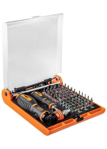 Назначение: для механических работ; Количество в наборе: 69; Комплектация: Торцевые головки, биты, воротник с шарниром, удлинитель