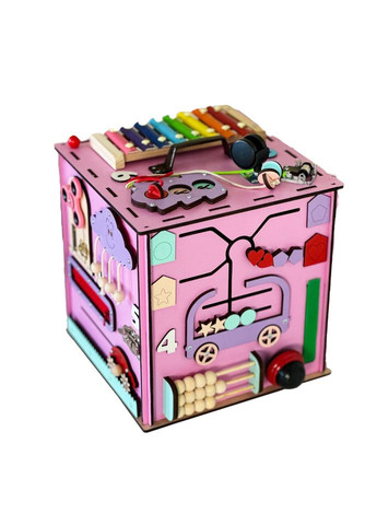 Представляем вам яркую новинку от бренда детских игрушек. Этот красочный бизикубик размером 15*15 не только забавляет ребенка, но и развивает ребенка через естественные интересы и деятельность, а не через использование формальных методик обучения. Бизикубик имеет компактные размеры, потому не занимает много места в доме. Его также можно брать с собой в путь: так ребенок точно не заскучает в автомобиле. Несмотря на свои довольно маленькие размеры, у бизикуба множество игровых элементов: Сортер с геометрическими фигурами для развития восприятия цвета и формы; Музыкальный ящик и три шестеренки с бисером – эти элементы познакомят ребенка с простыми механизмами, и улучшат слуховое восприятие; Предметы одежды: липучка, застежка-молния, и яркая шнуровка, где ребенок научится завязывать бантики и шнуровать; Окошко на замочке, где спрятана собачка; Лабиринт-водилка для укрепления пальчиков и кистей рук; Бусинки, которые можно двигать, – для улучшения захвата пальчиков; Часы с движущимися деревянными стрелками; Вращающийся барабан с цифрами и разными рисунками для того, чтобы учить ребенка считать.