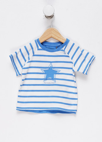 Bellybutton – это немецкий бренд, известный своей высококачественной и стильной детской одеждой. Ассортимент продукции для мальчиков и девочек очень разнообразен: куртки, комбинезоны, свитера, брюки, футболки и одежда для младенца из органического хлопка. Футболка в цвете бело-голубой полоски, декорированная принтом, круглая горловина с кнопками по линии плеча до 80 размера (размер 80, 86 без застежки), декоративно двойные рукава и низ изделия. Размер 56-0-2 месяца, 62-3-5 месяцев, размер 68-6-8 месяцев, размер 74-9-11 месяцев, размер 80-12-14 месяцев, размер 86-15-17 месяцев.