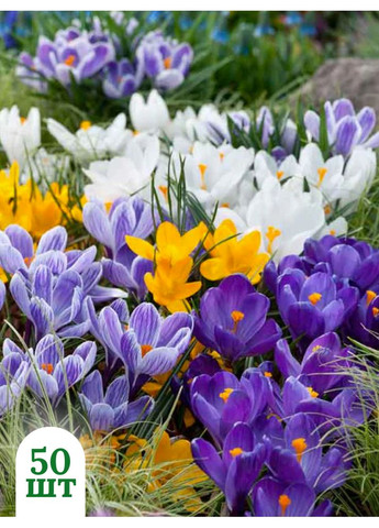Микс Великоцветковых крокусов – настоящая находка для тех, кто ценит яркие цвета и поразительные формы! Если каждый представитель этого вида очаровывает вас и вы просто не можете определиться с выбором лучшего – позвольте мы сделаем это вместо вас. Выбор микса крокусов предоставит вам готовую палитру, которая превратит вас из садовода в художника, и как только определитесь со своим фаворитом, добро пожаловать – выбирайте его и засаживайте весь свой цветочный участок! Что важно, эти милые бокалы цветы не только приносят кучу весеннего настроения, когда ежегодно с большим энтузиазмом распускаются, но и являются важным источником раннего нектара для пчел. Иногда пчелы даже используют их для ночлега, поскольку цветы окутывают их, как спальный мешок. Красочные, жизнерадостные и надежные – вы не ошибетесь с этими крупноцветущими крокусами! Микс хорошо подходит для натуралистических посадок в газонах, у деревьев, на склонах или даже в контейнерах. Каждая луковица дает по несколько цветоносов, и с каждым годом лужайка становится плотнее. Для этого микса мы всегда используем луковицы крупноцветковых крокусов высочайшего качества, а это значит, что сорта, которые мы выбираем для создания этой смеси, могут каждый раз отличаться (фото только иллюстративное). Однако, будьте уверены, разочарованным не останется никто, потому что абсолютно все представители этих цветов поражают своей красотой и утонченностью! Крупноцветковые крокусы – это группа гибридных крокусов, известных своими крупными, яркими цветами, появляющимися весной. Они являются результатом селекционной работы, улучшившей размер и цвет цветов по сравнению с ботаническими крокусами. Окрас лепестков варьируется от белого, желтого, розового, голубого до фиолетового, могут быть однотонными, двухцветными или полосатыми. Цветут весной, обычно в марте-апреле, хотя некоторые сорта могут цвести и осенью. Они хорошо растут на солнечных местах с хорошо дренированной почвой и подходят для клумб, альпинариев и даже горшков. Идеальные условия для выращивания: посадку крокусов лучше проводить осенью, еще до наступления заморозков. Идеальное время – сентябрь-октябрь. За этот период луковицы успевают хорошо укорениться и адаптироваться к почве, что в будущем поможет лучше переносить неблагоприятные условия. Помните, что выбор места для посадки – очень важен. Крокусы не терпят тени или даже полутени. В природе они растут на открытых равнинах, лугах, склонах, где много солнца. Поэтому сажать их нужно на открытом, хорошо освещенном участке. Свет – это один из главных факторов здорового роста и обильного цветения. Что касается почвы, то она должна быть легкой, хорошо дренированной. Очень важно добавить к нему песок – это улучшит воздухопроницаемость и не позволит влаге застаиваться. Излишняя влага опасна для луковиц – они могут загнивать. Но и пересушку допускать нельзя. Полив должен быть регулярным, умеренным, особенно в период роста. Однако в дождливую осень дополнительно поливать не нужно – важно следить за балансом. Крокусы неприхотливы в уходе. Они не нуждаются в ежедневных усилиях, однако со временем возникает потребность в пересадке. В первые три-пять лет после посадки это делать не обязательно. Но если вы заметили, что цветы стали мельче, это сигнал: луковицы загустели, их 