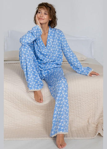 Пижамный костюм с кружевом голубого цвета. Комплект состоит из рубашки с длинными рукавами и брюк. Рубашка свободного кроя с отложным воротником, на белых пуговицах, с кружевом на рукавах. Брюки с кружевом, эластичным поясом на резинке, с карманами по бокам. Благодаря высокому качеству материала, пижама не дает усадку, практична и очень проста в уходе. Особенность пошива – закрытые мягкие швы, которые не только смотрятся аккуратно и безупречно, но и обеспечивают комфортное прикосновение ткани к телу, не позволяют изделию деформироваться. Состав: 50% хлопок, 50% вискоза. Размер XS/S. Обхват груди: 88 – 104 см. Обхват талии 67 см. Обхват бедер: 86 – 108 см. Длина сорочки 67 см. Длина рукава 60см. Длина брюк 106 см. Размер M/L. Обхват груди: 104 – 112 см. Обхват талии 73 см. Обхват бедер: 108 – 114 см. Длина сорочки 61 см. Длина рукава 60см. Длина брюк 108 см. Размер XL/XXL. Обхват груди: 112 – 120 см. Обхват талии 79 см. Обхват бедер: 114 – 122 см. Длина сорочки 73 см. Длина рукава 62 см. Длина брюк 110 см. Параметры модели на фото: Рост 165 см Грудь 87 см Талия 59 см Бедра 88 см Примечание по уходу ручная или машинная стирка при температуре воды до 30°C при минимальной скорости отжима. Изделие не отбеливать. Не сушите в сушильной машине. Сушить на горизонтальной поверхности в расправленном состоянии в тени. Гладить при умеренной температуре снизу. Не использовать химчистку.